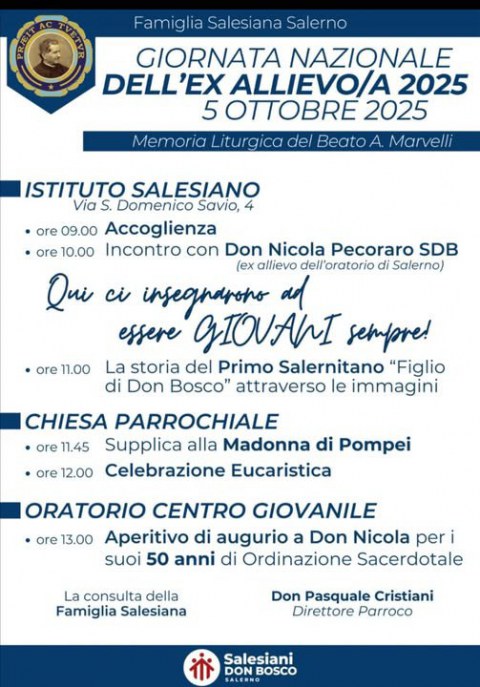 Per l'occasione abbiamo già invitato don Nicola Pecoraro, primo salesiano proveniente da Salerno, che festeggerà con noi il 50 della sua ordinazione sacerdotale.