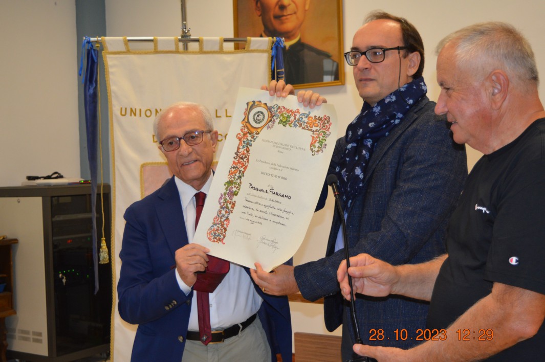 Il giorno 28 ottobre 2023 alle ore 12 nel Salone dell’Istituto Salesiano il VICE PRESIDENTE della Federazione Nazionale Exallievi/e ENRICO LEONE ha consegnato il Distintivo d’oro a Pasquale(NINO) GARGANO (già Presidente Unione exallievi/e di Salerno e membro del Consiglio Ispettoriale Campano-Lucana).